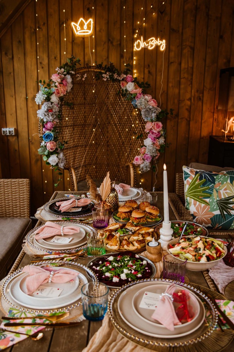 W cenie dostają Państwo dekorację stołu, świeczniki, stojaki na kwiaty, obrusy, złote i srebrne sztućce, stojaki i patery na jedzenie, szklanki, lampki do szampana, serwis do kawy, głośnik z karaoke, klimatyczne napisy led np. “Oh baby” słoik z kranikiem, tablice na donaty i wiele więcej…