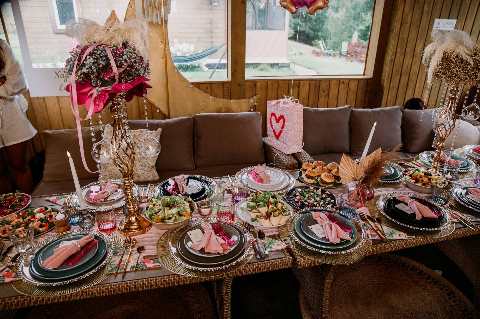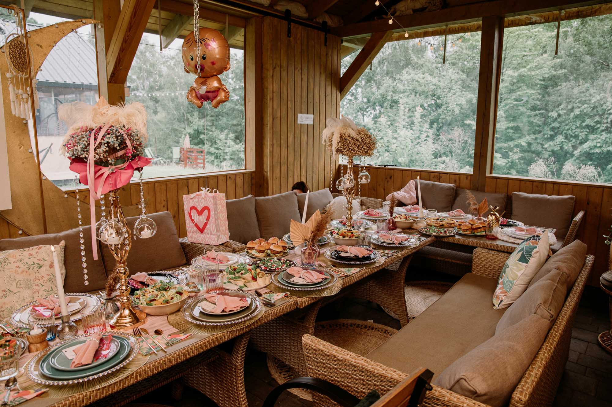 W cenie dostają Państwo dekorację stołu, świeczniki, stojaki na kwiaty, obrusy, złote i srebrne sztućce, stojaki i patery na jedzenie, szklanki, lampki do szampana, serwis do kawy, głośnik z karaoke, klimatyczne napisy led np. “Oh baby” słoik z kranikiem, tablice na donaty i wiele więcej…